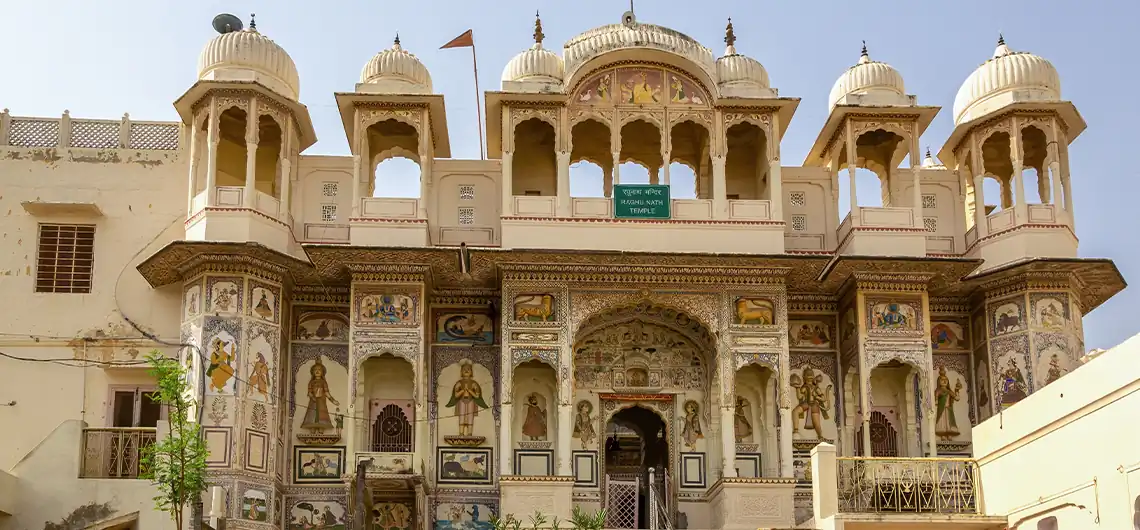 churma, laal maas, ghewar and malpua. Buy handicrafts, silver jewellery, Bandhej style bedsheets, and silk sarees.