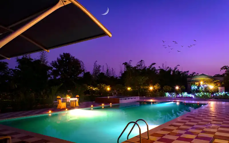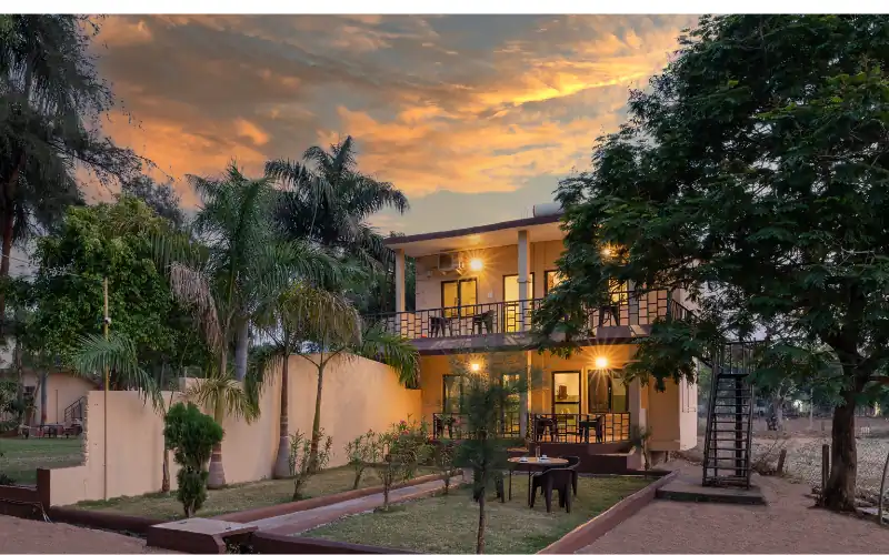 Avadale Tadoba offers luxurious accommodations with modern amenities and stunning views of the surrounding wilderness. It features a multi-cuisine restaurant, a swimming pool, and a spa for ultimate relaxation. Guests can enjoy guided safari tours to explore the rich wildlife, including tigers, leopards, and various bird species.